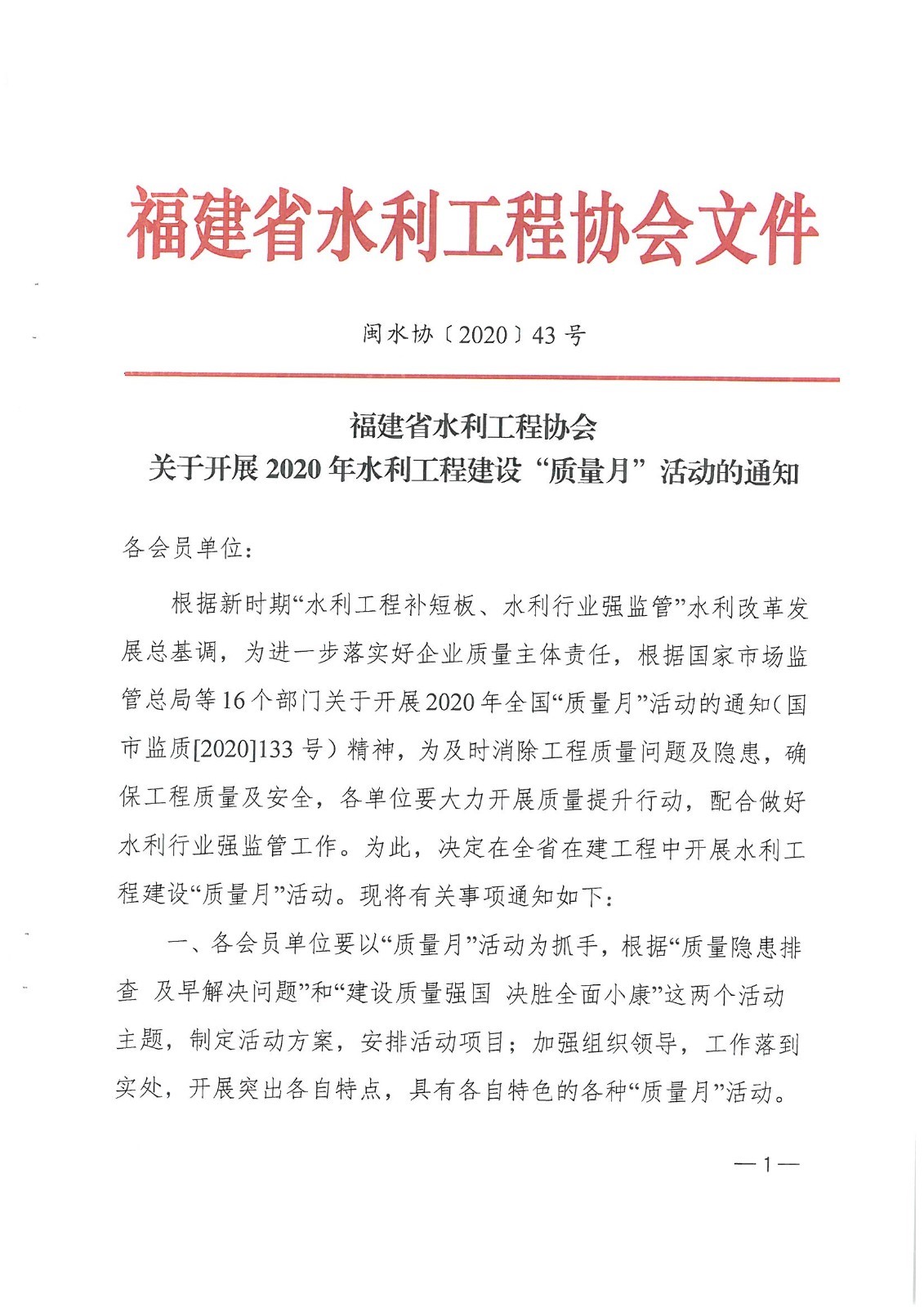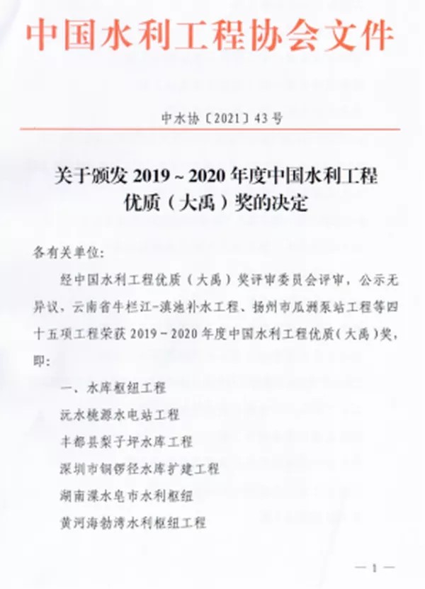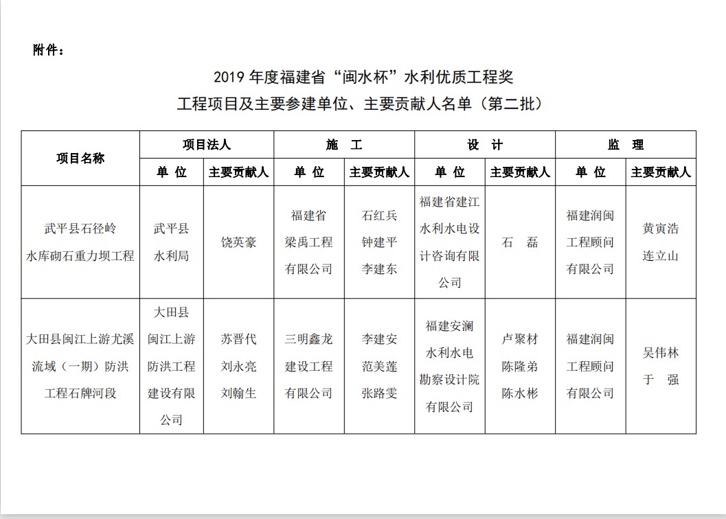 为推动我省水利事业高质量发展,鼓励我省在建水利工程积极创建“大禹奖”,根据《福建省“闽水杯”水利优质工程评选管理办法》(以下简称“办法”,见附件1),经研究决定,组织开展2023年度福建省“闽水杯”水利优质工程评选工作。有关申报事宜通知如下: