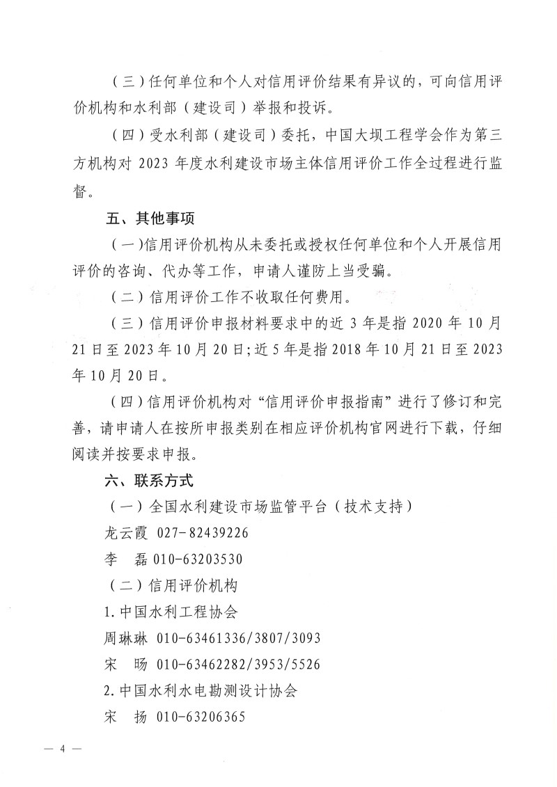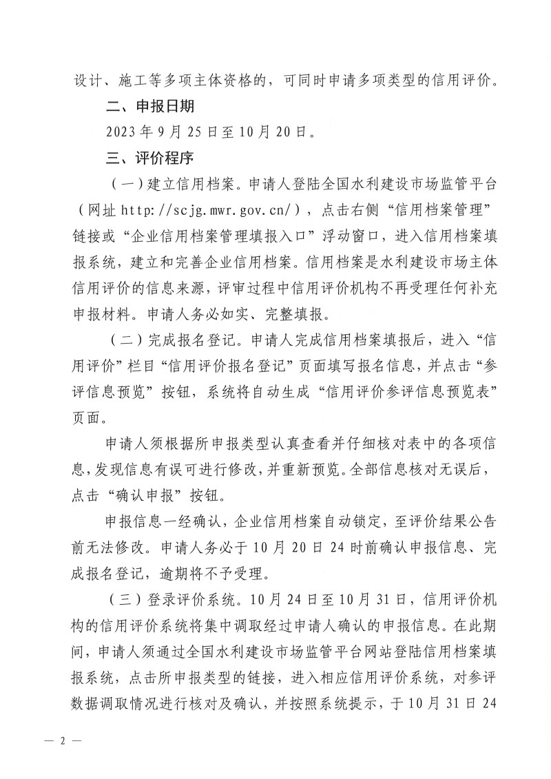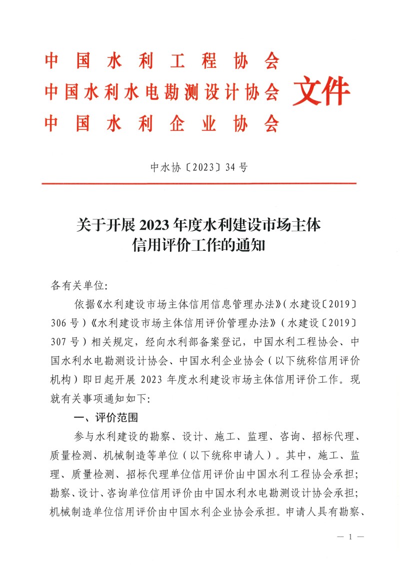申请参加2023年度水利建设市场主体信用评价的施工、监理、招标代理、质量检测单位。